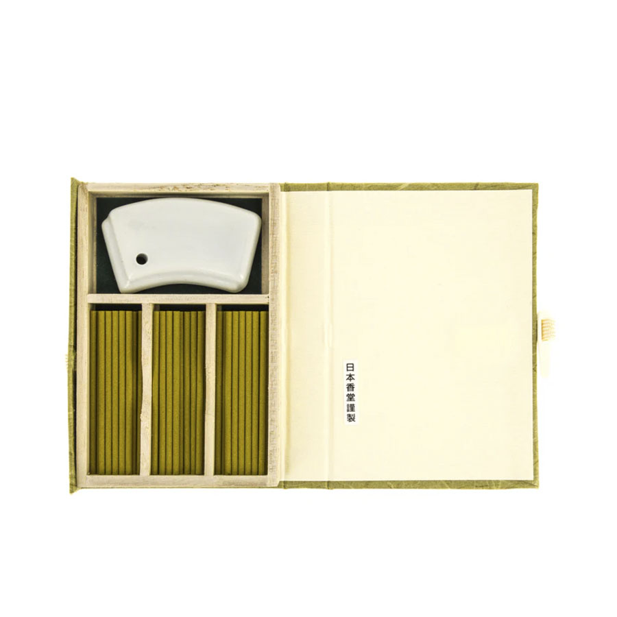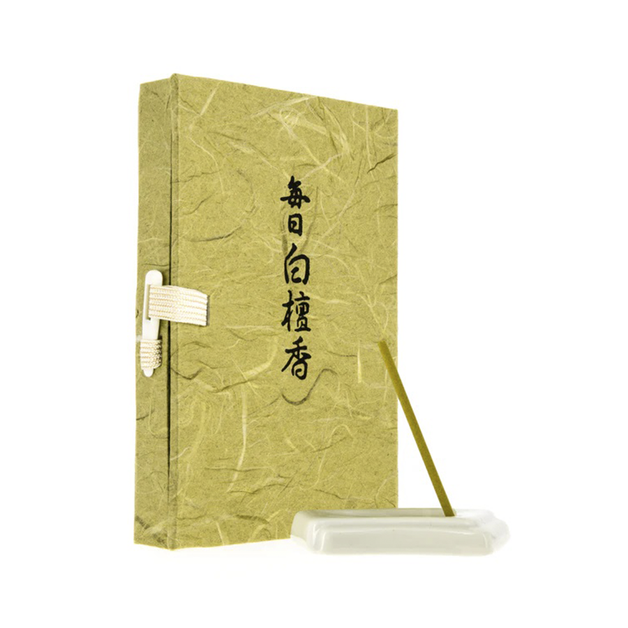Mainichi Byakudan, “Sándalo para uso diario”, combina sándalo indio de alta calidad con hierbas medicinales, ofreciendo una fragancia intensa y relajante. Incluye 36 barritas de incienso e incensario.