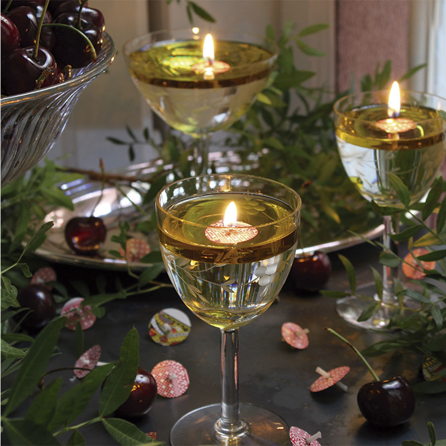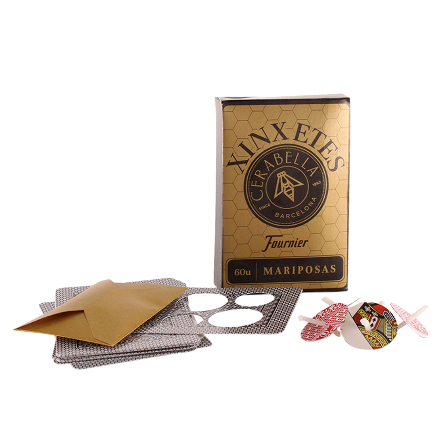 Estas velas flotantes -una forma tradicional de velas creadas con cartas- nacen del excedente de naipes originales, troquelados uno a uno para convertirse en pequeñas islas que arden delicadamente sobre el agua. Cada caja incluye cartas perforadas y un sobre con mechas.